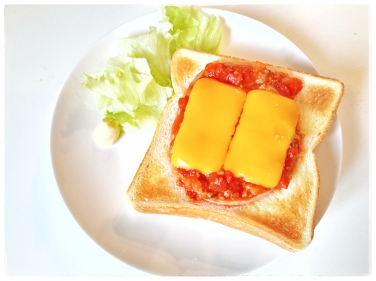 でも、昨晩のミートソースをそのまま使うんじゃ、パスタがパンに変わっただけでちょっと味気がありません。