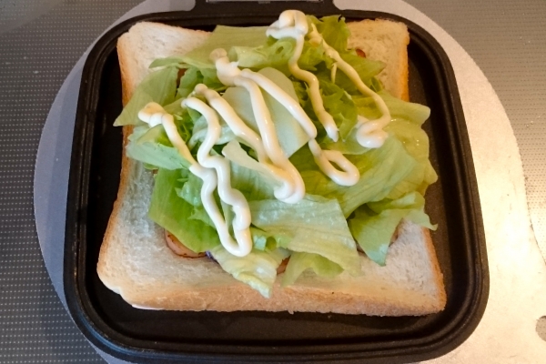 休日のホットサンド,オープンサンド お歳暮ハムとレタス タグ:うちのヒットレシピ 2016-12-24 10:13:00 お歳暮の高いハムを頂きました。 まずはシンプルなレタスサンドで頂きました。 材料(1枚分) ・ハム 5切れ ・レタス 1 ハムを薄く切って両面を焼く 2 パンにハムを並べてからレタスを乗せ、マヨネーズで味付け 3 焼いて出来上がり 高いハムは味がしっかりしてて美味しい