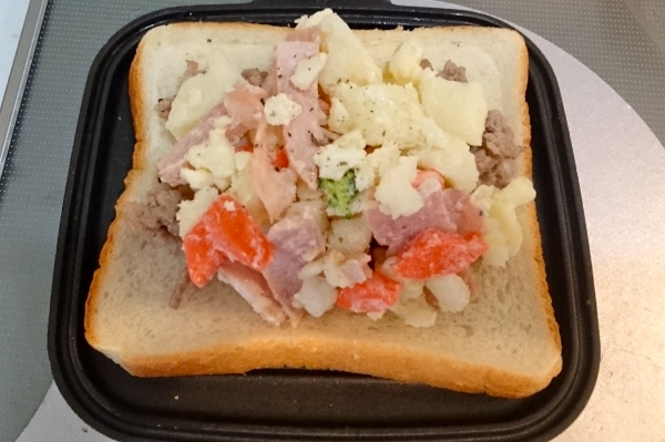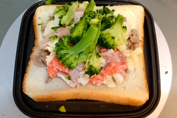 休日のホットサンド,オープンサンド 生姜焼きとポテトサラダ、ブロッコリー 2016-12-25 10:06:00 これも残り物ホットサンド。 ブロッコリーで野菜を増して美味しい朝食。 ・豚肉生姜焼き ・自家製ポテトサラダ ・ブロッコリー 1 生姜焼きと自家製ポテトサラダを乗せる 2 荒く切ったブロッコリーを乗せてマヨネーズで味付け 3 焼いて出来上がり