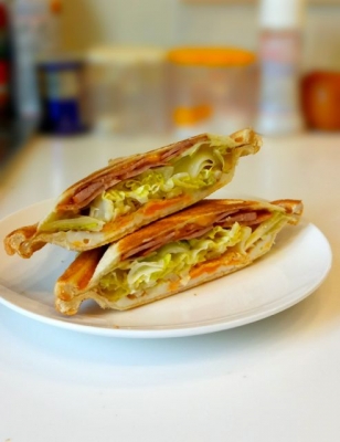 休日のホットサンド,オープンサンド ハムエッグレタス玉ねぎチェダーチーズ 2017-01-02 11:03:00 玉ねぎをプラスしてみました。 玉ねぎの辛みが感じられたので要改良です。 材料 ・ハム 薄切り5切れ ・たまご 1個 ・レタス 1〜2枚 ・玉ねぎ 1/4個 ・チェダーチーズ 適量 1 ハムを薄く切って両面を焼くおく 2 たまごを焼いてパンに乗せてマヨネーズで味付け 3 レタス、ハム、チェダーチーズの順で乗せて 4 焼いて出来上がり 玉ねぎを切る方向を間違えたのか辛く感じました 次は対策しておこう