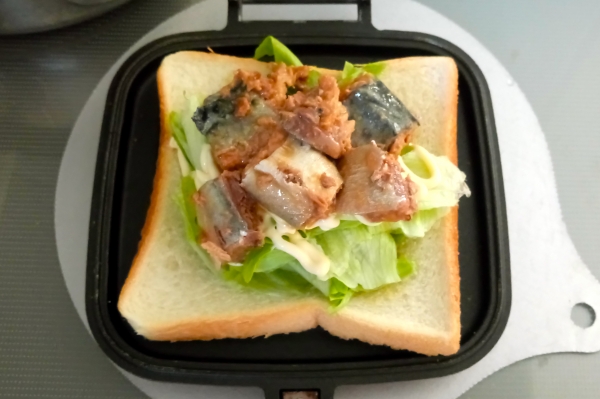 休日のホットサンド,オープンサンド サバみそレタス 2017-01-07 09:30:00 サバみそをホットサンドに。 意外すぎるくらい美味い、お試しあれ。 材料 ・マスタード 適量 ・サバみそ 適量 ・レタス 1〜2枚 1 パンにマスタードを薄く塗り、レタスを乗せマヨネーズをかける 2 豪快にサバみそを投入 3 焼いて出来上がり 缶詰の余ったサバみそだけど美味しくできました。