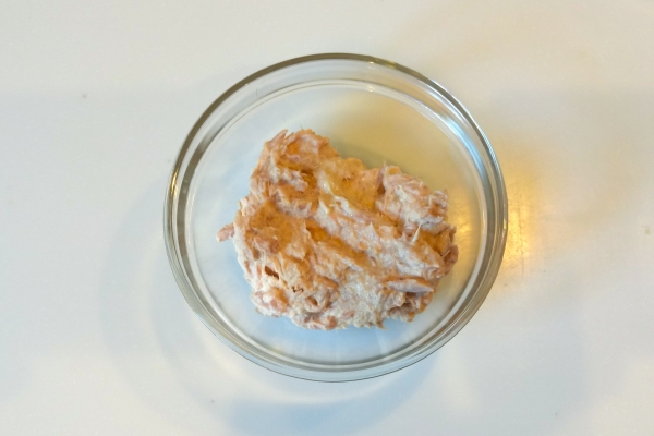 水気を取ったツナにマヨネーズとオリゴ糖を混ぜ合わせる。