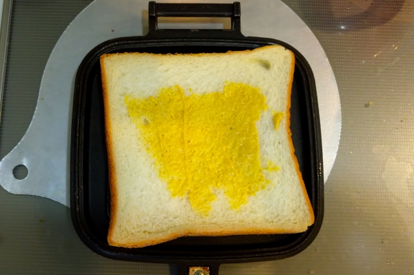 おすすめのやり方は、パンを乗せたホットサンドメーカーを弱火で温めておいて