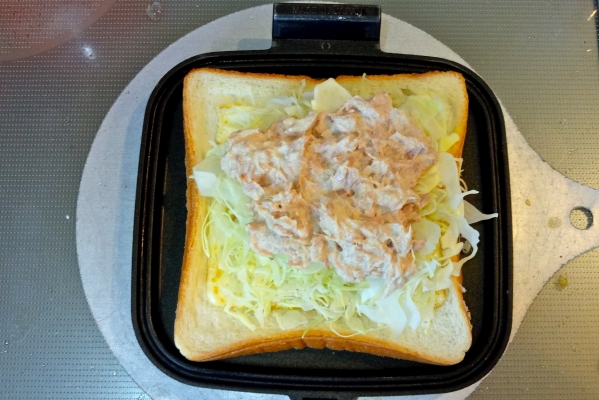・余った千切りキャベツを美味しくホットサンドにしたかった。そこでツナマヨと組み合わせた。