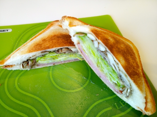 変わらない組み合わせ ハム、レタス、たまご、そしてぶなシメジ。 ・塩コショウで炒めたぶなシメジ ・ハムステーキ ・レタス ・たまご 1、ハムステ...