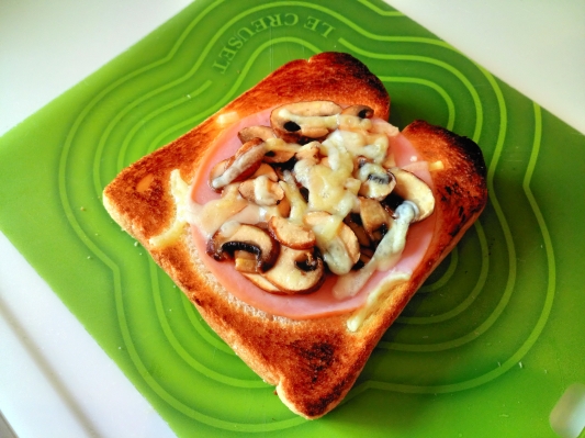 たっくさんのマッシュルーム薄切り。 豪華じゃないけど美味い ・生マッシュルーム 3個 ・ハム 1枚 1、マッシュルームを薄切りにして、バターで炒める 2、パンにハムと炒め...