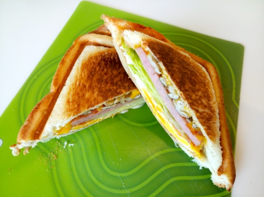 最近のマイブームは、トーストで挟んだサンドイッチ。 ソーセージ、アボカド、キャロットサラダ、などなどでサンドします。 4枚目は嫁さん大好...