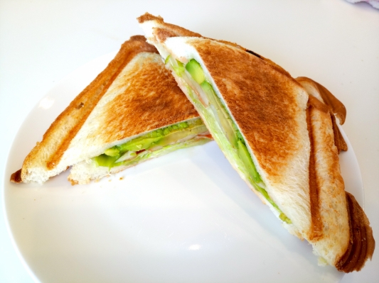 野菜オンリーのホットサンド 和風を目指してわさび醤油で味付けしました ・アボカド 適量 ・水にさらしたたまねぎ 適量 ・レタス 1、パンにマヨネーズを薄く塗る 2、...