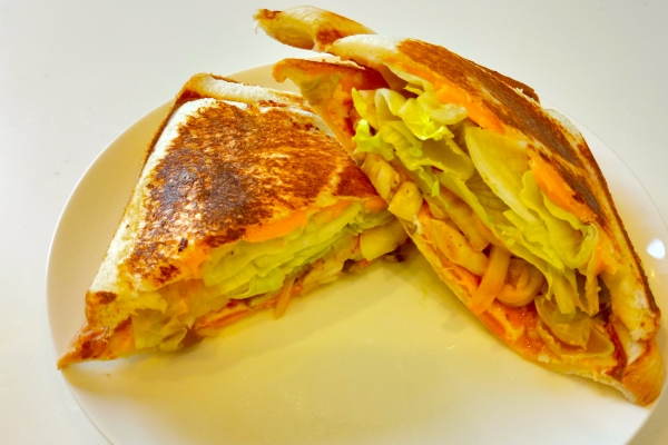 具沢山なホットサンドの一例。 レタスがシャキシャキで美味しい。 ・たまご 1個 ・シメジ ・タマネギ 1/8 ・ソーセージ 2本 ・レタス ・チェダーチーズ ...