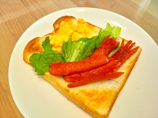 綺麗な3色オープンサンド。ソーセージはカニさんの形に包丁をいれてあります オープンサンドは見た目が良い。もっと美味しそうになるかなあ、と考えています 子供も食べるので皮なしソーセージで。 ...