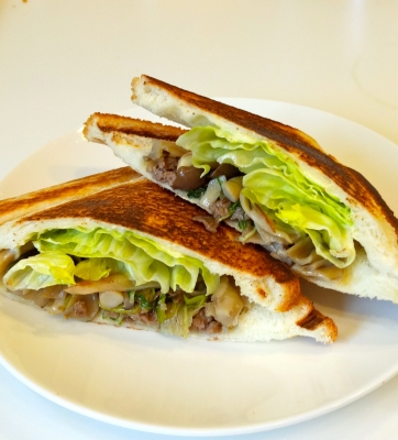昨晩のすき焼きをホットサンドにしてみました。 サバみそに続き和食と相性が良いのがすごい。 ・すき焼き ・レタス 1すき焼きの汁気を少し取って、パンに乗せる 2レタ...