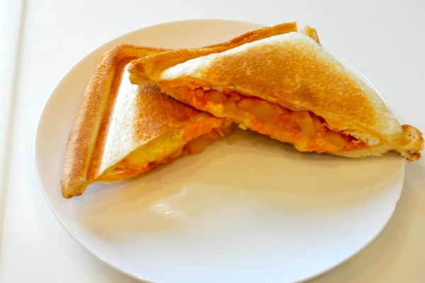 電子レンジでホットサンドを作る道具を投入。 しかし説明書通りに作るとパンに耳が堅くなったけど、 こういう出来上がりなのかな ・たまご ・ウインナー ・カレー ・溶けるチーズ...